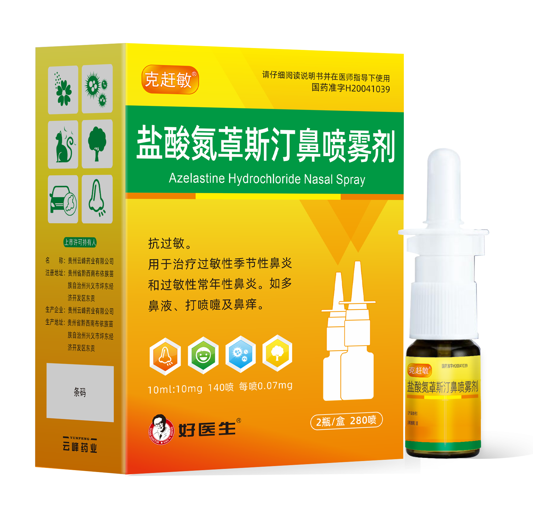抗過敏。 用于治療過敏性季節性鼻炎和過敏性常年性鼻炎。如多鼻液、打噴嚏和鼻癢。
